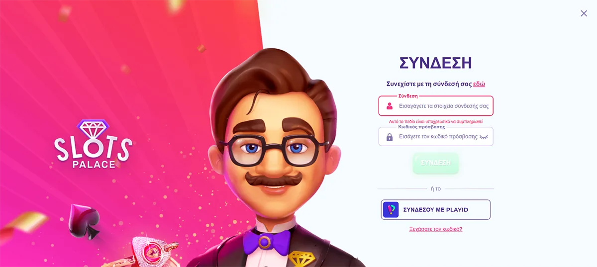 Διαδικασία εισόδου στο SlotsPalace Casino